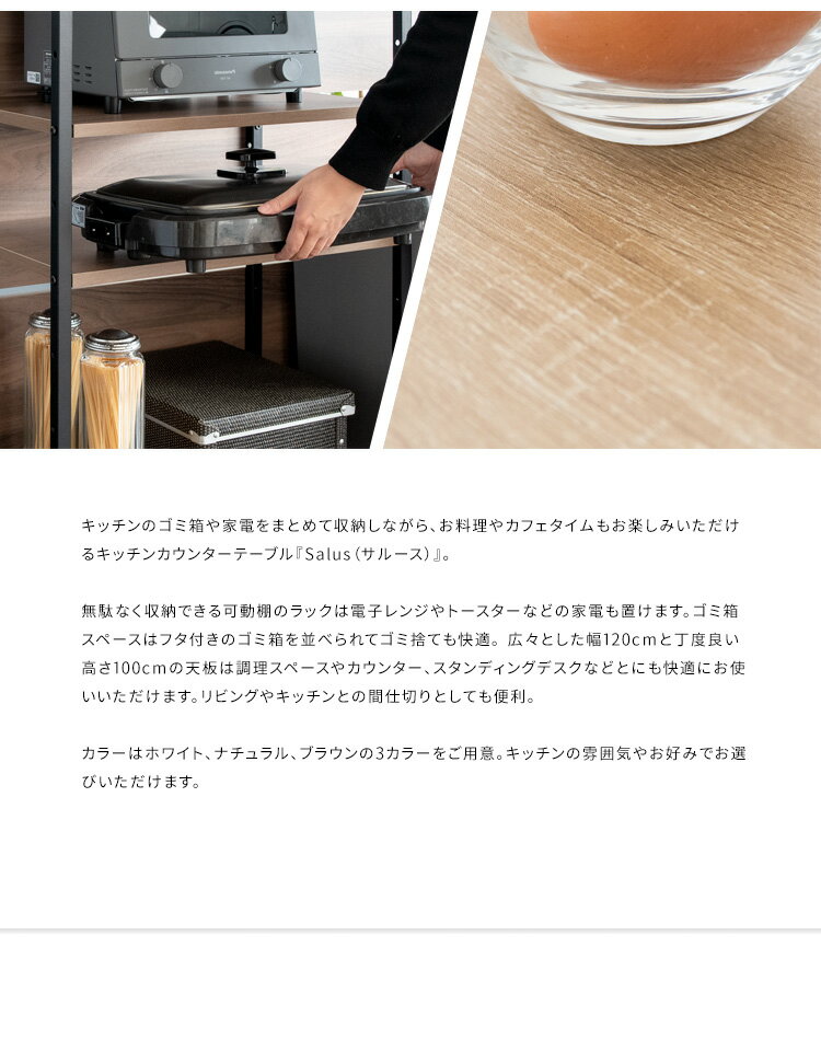 キッチンカウンターテーブル『Salus(サルース)』 幅120×奥行き60×高さ100cm KNT-1260 宮武製作所 |
