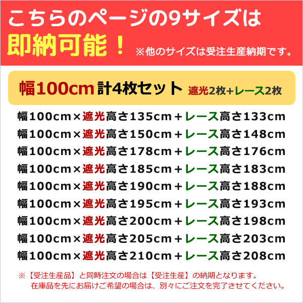 【マラソン期間クーポン有】 ★送料無料 カーテン 4枚セット 遮光1級(遮光率100%)+ミラーレース うらこセット 完全遮光 断熱 防音+夜も見えにくい UVカット 巾(幅)100cm×高(丈)135・150・178・185・190・195・200・205・210cm 各2枚合計4枚セット 幅100センチ【在庫品】 |