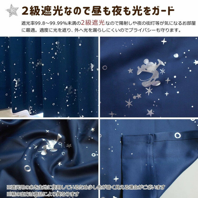 Disney ディズニー ミッキー 箔プリント カーテン 遮光2級 遮光カーテン 2枚組 遮光 洗える キラキラ ウォッシャブル タッセル付き 北欧 おしゃれ ドレープカーテン(代引不可)【送料無料】 |