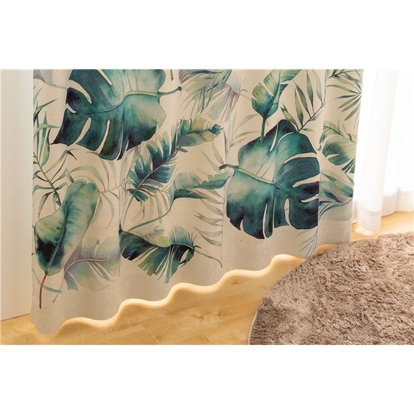 遮光カーテン 幅200cm×丈225cm リーフ柄 1枚 洗える ウォッシャブル 日本製 国産 アジャスターフック タッセル付き 3級 遮光 カーテン プランシェ GN 美しい植物柄と形状記憶加工で、光を遮りながら洗えるウォッシャブルカーテン 幅200cm×丈225cmの大判サイズで、日本製 |