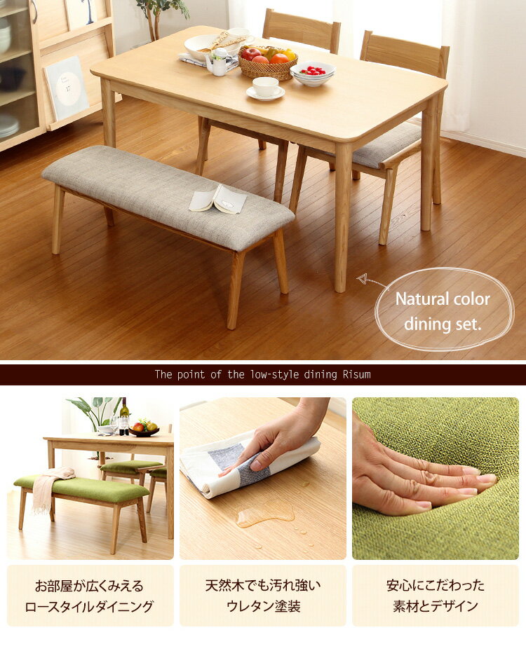 11/20(木)00:00〜最大2000円OFFクーポン配布中 ダイニング4点セット(テーブル+チェア2脚+ベンチ)ナチュラルロータイプ 木製アッシュ材|Risum-リスム- 送料無料 SH-01RIS-4BN 組立不要 |