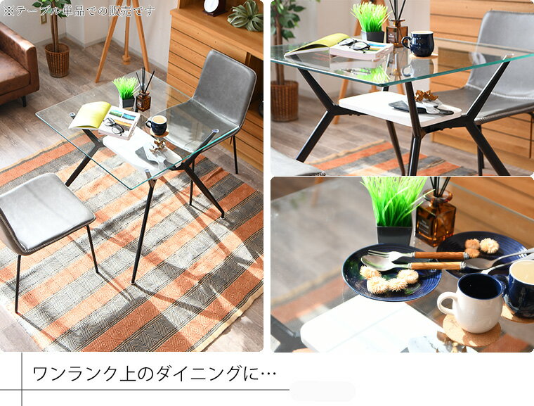 ガラステーブル クリアガラス ダイニングテーブル 収納テーブル 食卓テーブル 幅80cm 2人用 おしゃれ 強化ガラス ダイニング スチール |