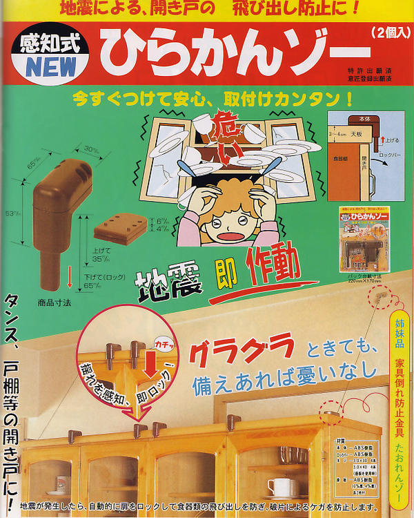 耐震グッズ 食器棚 飛び出し防止 自動ロック 耐震ロック スーパーひらかんゾー 防災グッズ 地震 災害 N-2136 送料無料 |