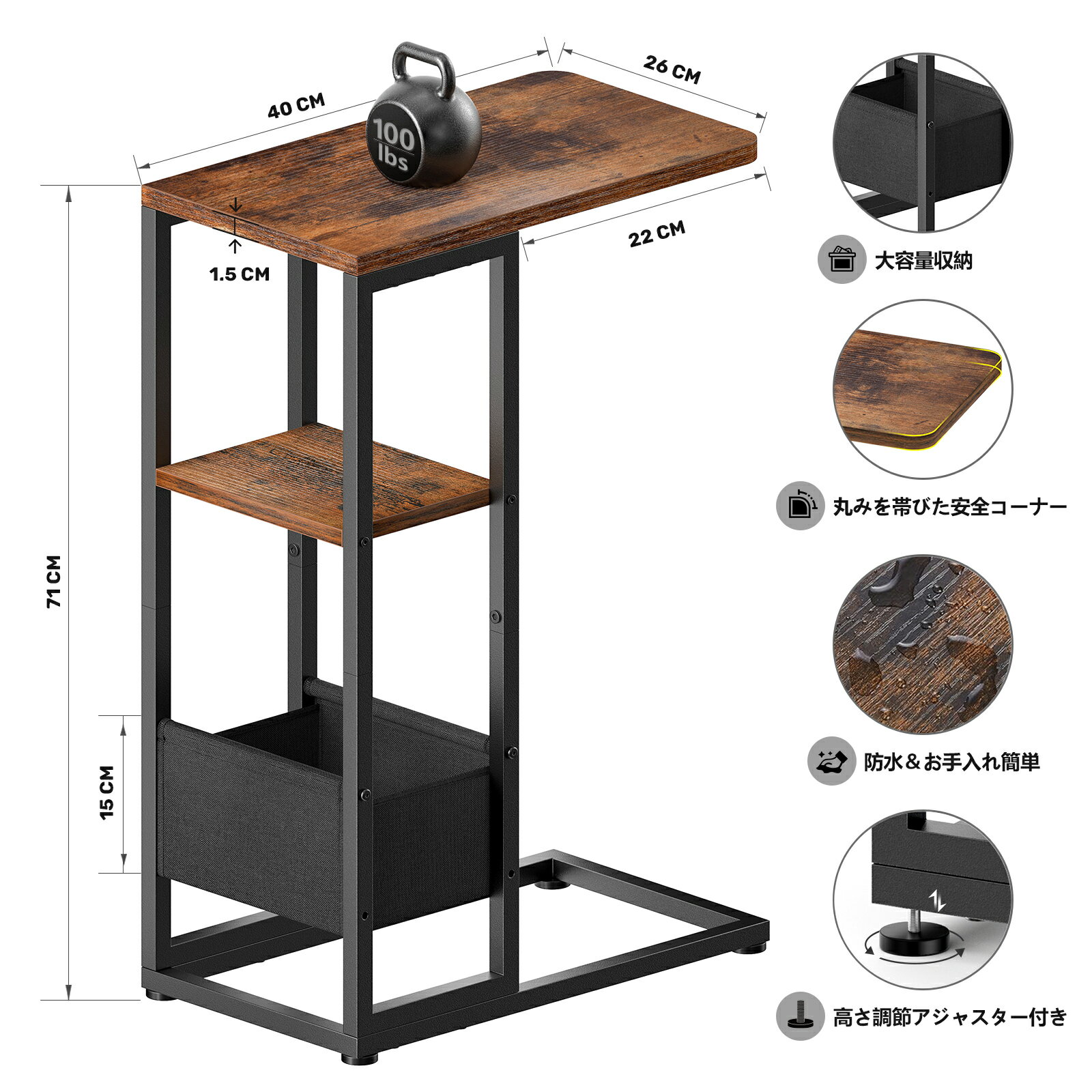 Yuede サイドテーブルコの字型 ベッドサイドテーブルソファーテーブルサイドデスク大容量収納袋 層板調節可 木製天板 ヴィンテージ調 安定設計 リビング 寝室 一人暮らし ワンルーム 小スペース |