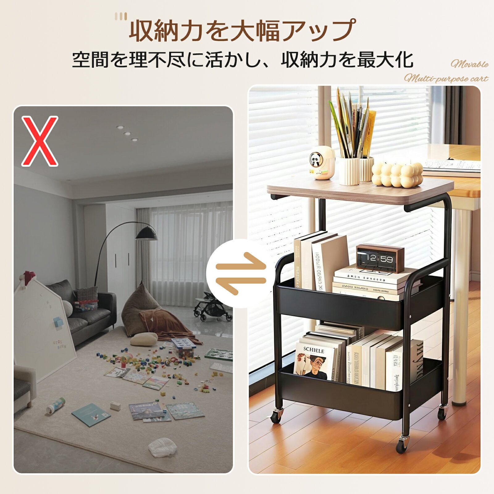 ★お買い物マラソン15%OFFクーポン★サイドテーブル ナイトテーブル キャスター付き サイドラック ベッドサイド 収納棚 3段 大容量 マガジンラック オープンラック テーブル 収納 棚 ラック おしゃれ 木製 玄関 寝室 多目的 組立簡単 ホワイト/ブラック 最大耐荷重30kg |