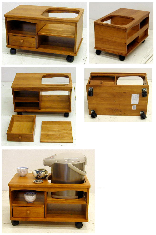 お座敷ワゴン ポットワゴン 引出付 キャスター付き 木製 T5625 |