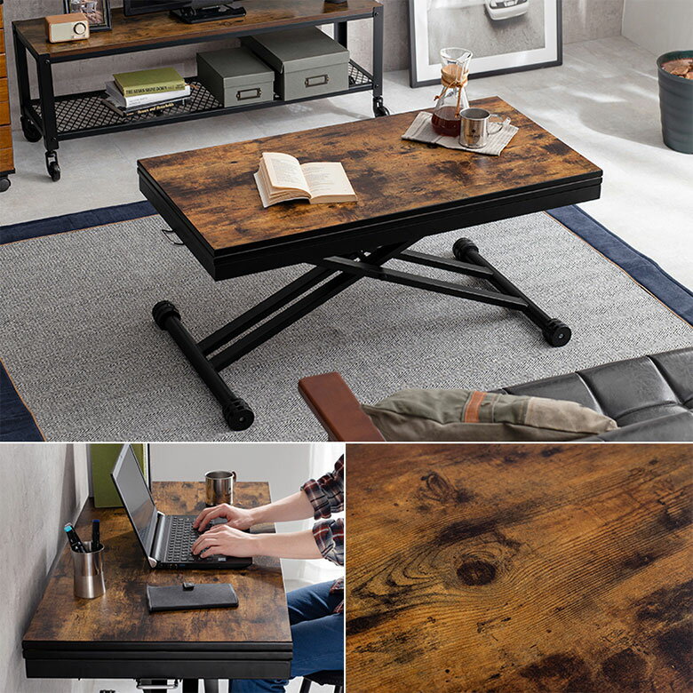 昇降式テーブル リフティングテーブル インダストリアル 幅94.5 高さ40から54 テレワーク センターテーブル ローテーブル リフトアップテーブル ブラック elvis 通販Labo |