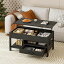 IKIFLYローテーブル昇降式木製コーヒーテーブル引き出し付きテーブル収納付きセンターテーブル大容量収納リビングテーブル高さ調整リフティングテーブル簡単開閉ホンムオフィステーブ… |