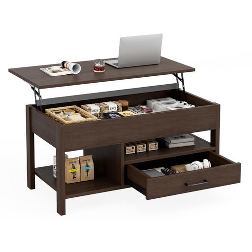 IKIFLYローテーブル昇降式木製コーヒーテーブル引き出し付きテーブル収納付きセンターテーブル大容量収納リビングテーブル高さ調整リフティングテーブル簡単開閉ホンムオフィステーブ… |