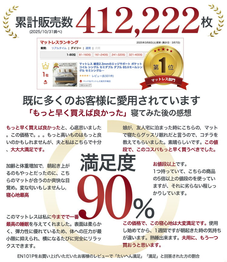 マットレス 線径2.3mmのエッジサポート ポケットコイル シングル セミダブル ダブル 85スモールシングル セミシングル 厚さ20cm 配送日指定可 送料無料 スプリングマットレス EN101P |