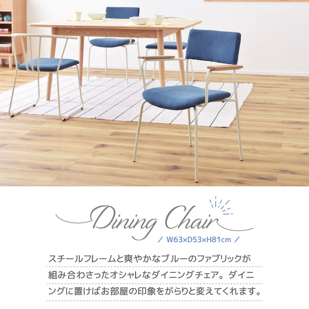 ダイニングチェア 47cm 座面高47 チェア チェアー 椅子 イス 食卓イス 食卓椅子 木製 天然木 肘あり 肘掛け アームチェア 完成品 布張り ブルー デニム風 スチール ホワイト 白 北欧 西海岸 おしゃれ かわいい 可愛い 1脚 単品 |