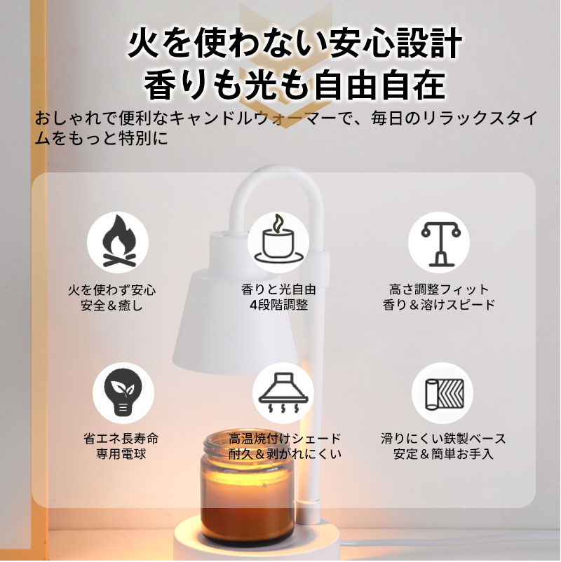 キャンドルウォーマー 高さ調節 北欧風アロマランプ タイマー付き・高さ調整可能 アロマキャンドルウォーマー アロマランプ コード 放熱孔付き リラックスグッズ 香りで癒す ナイトライト 北欧 シンプル |