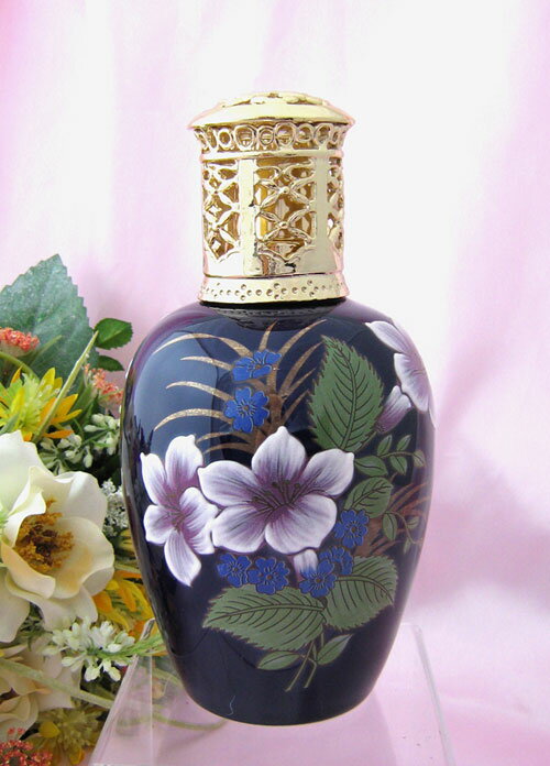 ラージ アロマランプ(アロマポット) EABc6-3紺に金花模様 ゴールドキャップ |