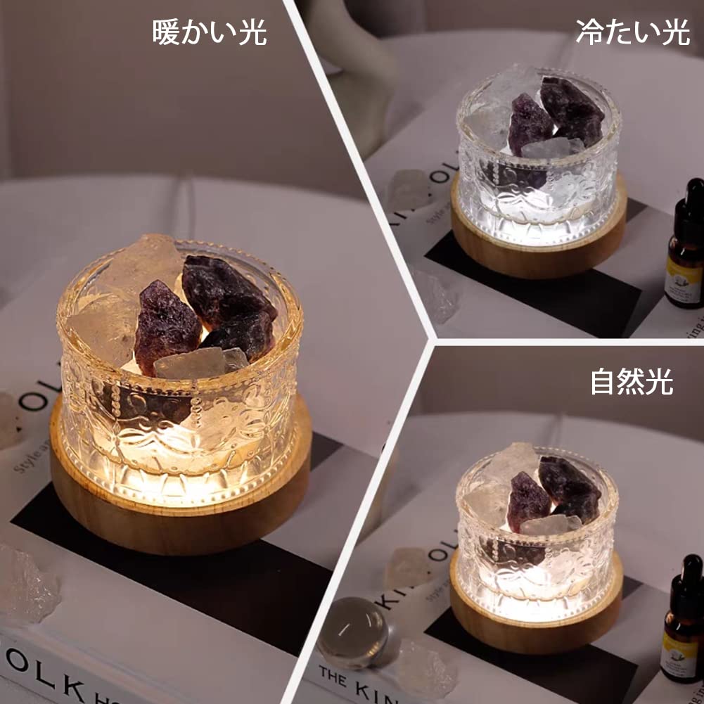 【送料無料】HIGHAWKアロマランプ ベッドサイド クリスタル ガラス瓶 睡眠ライト 雰囲気 蓋付き USB アロマ用 空気浄化 ランプ台座 三色ライト(ホワイト) |