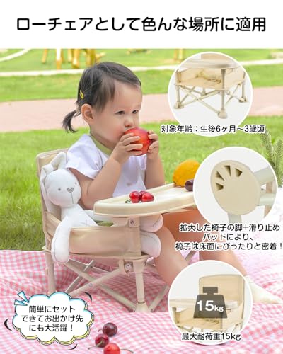 KIMINO ベビーチェア 折りたたみ 【6ヶ月から3歳まで】テーブルチェア ベビー 離乳食 赤ちゃんテーブルイス ダイニングチェア イス 子ども用 お食事椅子 ベビー 家庭/外食/旅行用(ベージュ |
