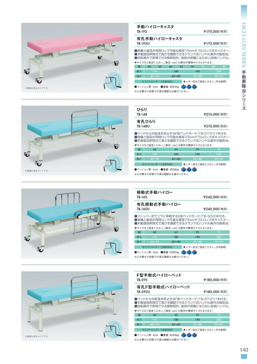 高田ベッド製作所 有孔F型手動式ハイローベッド TB-595U 手動昇降台 ベッド リハビリ トレーニング 国産 |