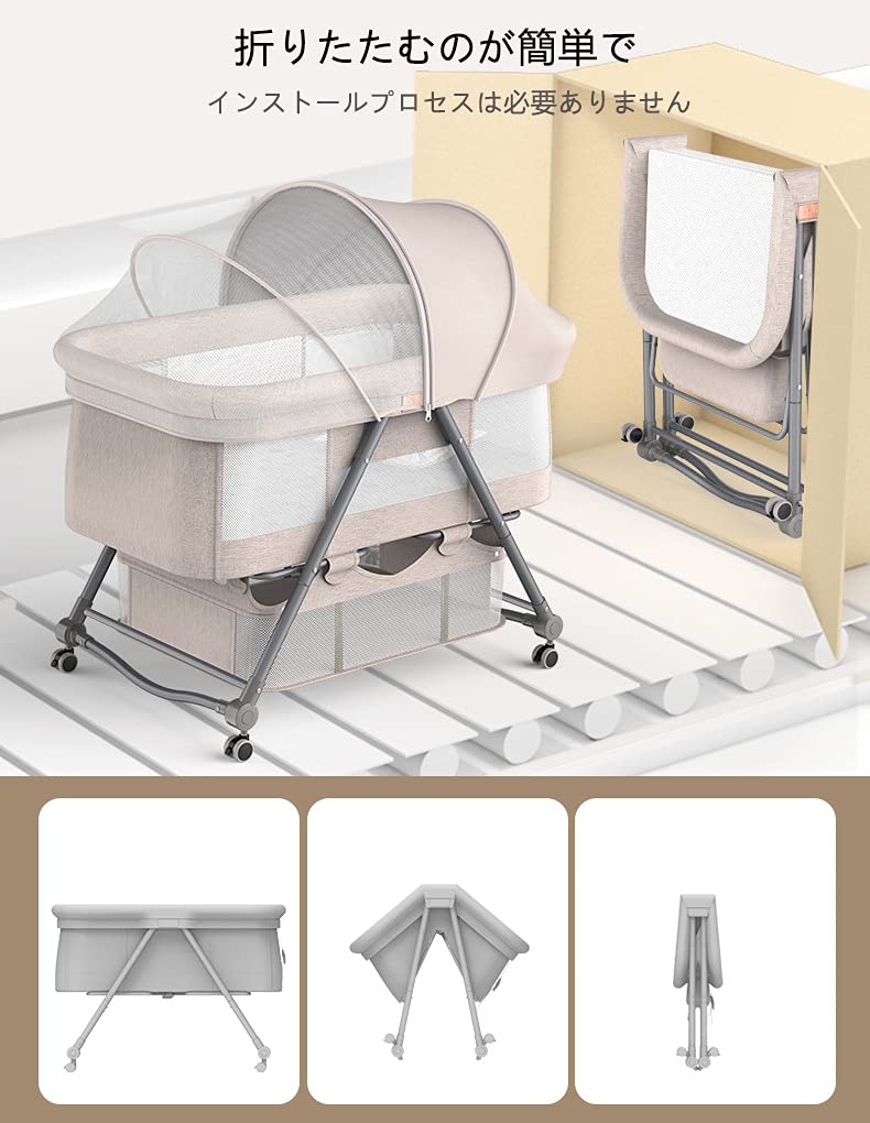 Luddy ベビーベッド ベビーラック ハイローベッド 折りたたみ 組み立て不要 携帯易い添い寝 ポータブルな簡易ベッド揺籃に変身可能 キャスタ付き ゆりかご 収納便利 通気 洗濯可能 新生児0ヶ月~24ヶ月93*55*77cm |