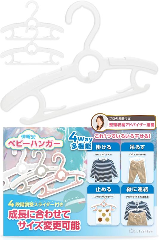 clasifan 子供用ハンガー ベビーハンガー 伸縮式 滑らない 連結可 【4Way多機能】 省スペース 型崩れ防止 成長に合わせて長く使える |