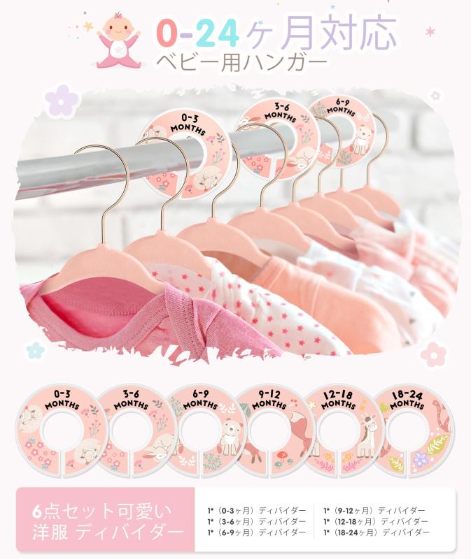 DOIOWN ベビーハンガー ベルベット製 滑らない 子供用ハンガー 28cm 赤ちゃん キッズハンガー サイズ分けタグ6枚付き 収納整理 ピンク |
