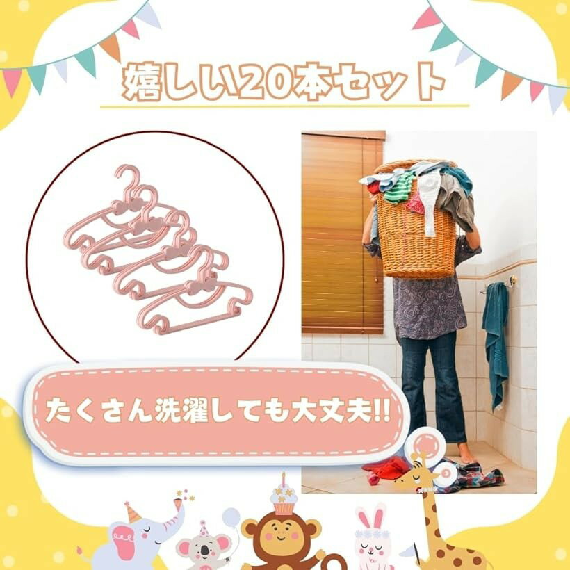 20個 防滑表面付き 用プラスチックハンガー 滑り止め機能で衣類をしっかりキープ ピンク色でかわいいベビーハンガー 収納に 幼児用 |