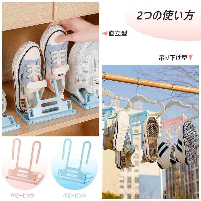 YOOTASIO シューズハンガー子供 ベビーハンガー 靴ハンガー 洗濯ハンガー 吊り干し靴干しハンガー 靴スタンド 靴収納 子供用 空間節約 靴干し・収納の両用シューズラック(2個*ベビーブルー |