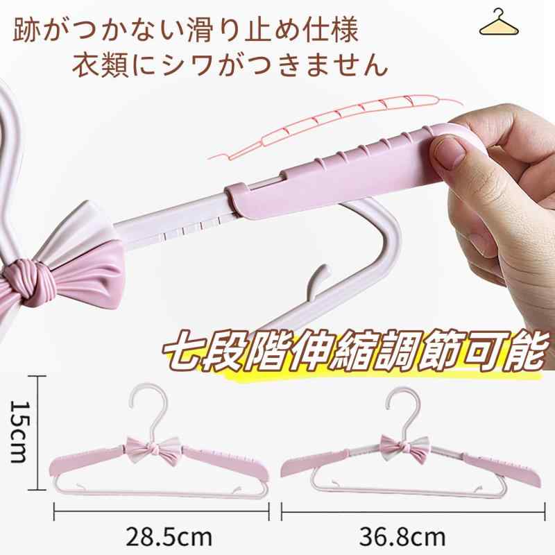 Orirya ハンガー ズボンハンガー 洗濯ハンガー かたくずれ防止 かわいい蝶結び付き 伸縮式 ベビーハンガー 滑らない 調節可能28.5~36.8cm 5本セット ピンク |