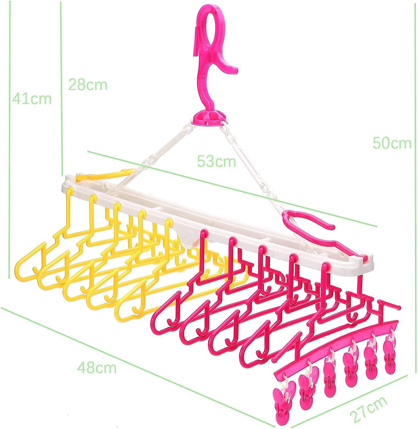 ベビーハンガー キッズ 10連ハンガー 洗濯ハンガーラック 取り外し 折り畳み フリーグリップ 洗濯物ハンガー 洗濯干し レッド&イェロー |