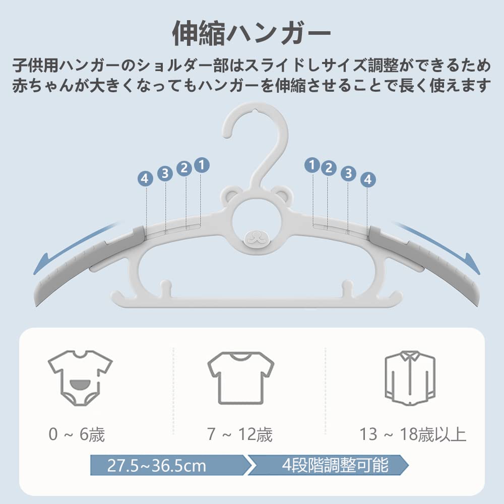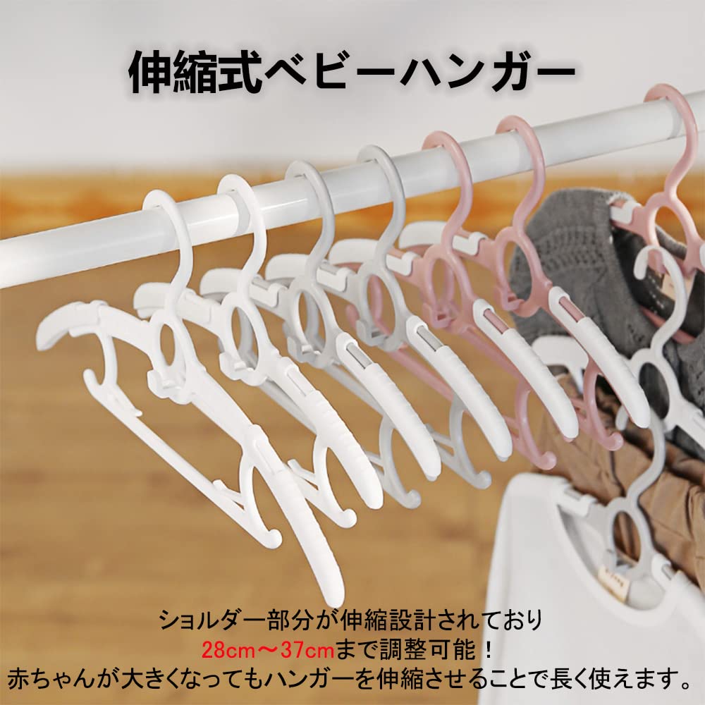伸縮できるハンガー 子供用 ベビーハンガー 20本セット 新生児 ベビー キッズ用 滑りにくい跡残らず型崩れ防止滑り止め付き 洗濯物干しプラスチック製 肩幅28cmと37cm収納便利クローゼット用 |