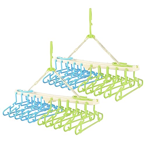 赤ちゃん10連ハンガー2個セットベビーハンガーハンガー折り畳み取り外し多機能物干しハンガー衣類収納クリップ12個付きイエローピンク |