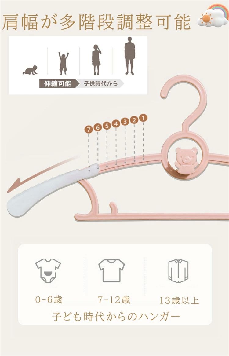 ベビーハンガー 洗濯ハンガー 衣類ハンガー ベビー用品 滑り止め 重ねるデザイン 子供用ハンガー 伸縮式27.5cm〜39cm 幼稚園 保育園 スライド サイズ調整 乳児 幼児 保育園児 幼稚園児 おしゃれ 出産祝い 出産準備 10本セット 送料無料 |