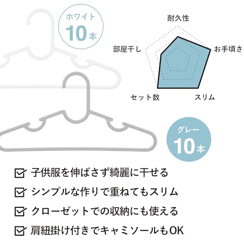 シービージャパン ベビーハンガー キッズハンガー 衣類ハンガー 20本組 (ホワイト10本 グレー10本) 子供用 肩紐掛け付き 洗濯ハンガー クローゼット収納 スリムキッズハンガー20P Kogure |