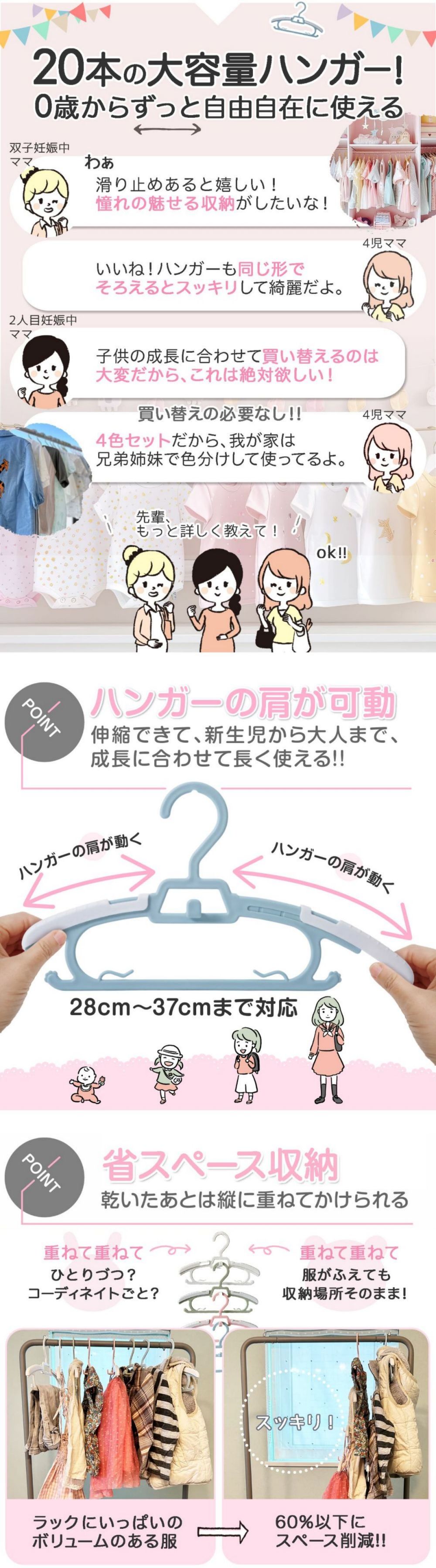 サイズ調整でき、長く使えます!ベビーハンガー 10本セット 跡がつかない 滑らない 赤ちゃん キッズ 子ども 衣類ハンガー 子供用ハンガー 洗濯 物干し コンパクト 洋服 子ども用 おしゃれ ピンチ付き |