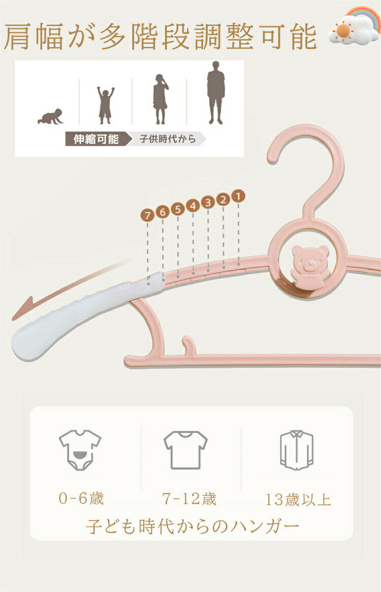 ベビーハンガー 10/20本セット ハンガー 子供用 新生児 ベビー用 キッズ用 伸縮 ハンガー ベビー キッズハンガー 滑りにくい 跡残らず 型崩れ防止 滑り止め 物干し 洗濯ハンガー プラスチック クローゼット 肩幅27cm-36.5cm 収納便利 |
