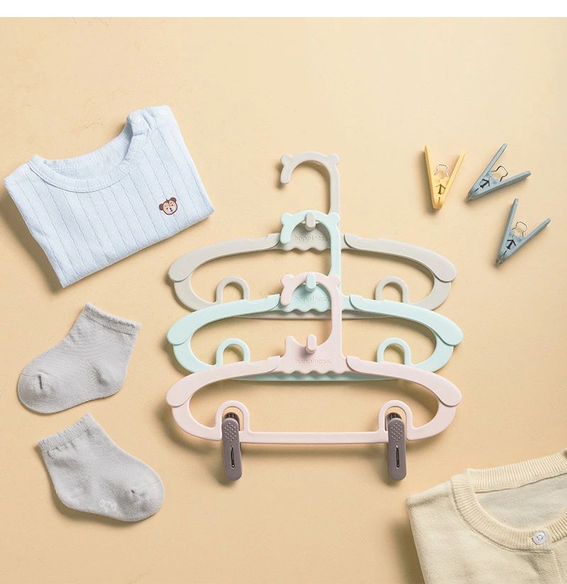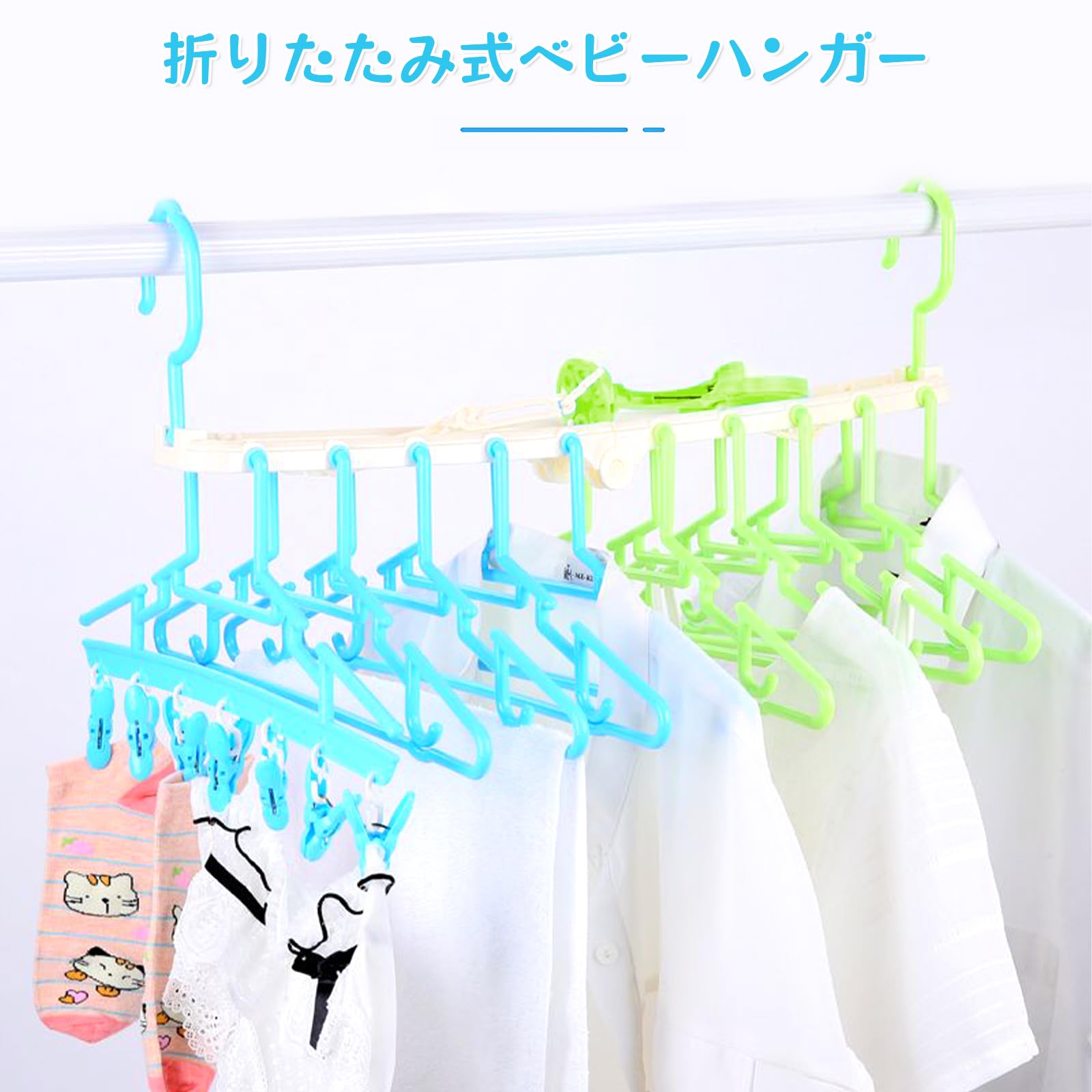 連ハンガーベビーハンガー折りたたみ取り外し多機能赤ちゃんハンガーキッズサイズ物干しハンガークリップ 個付きイエローピンク |