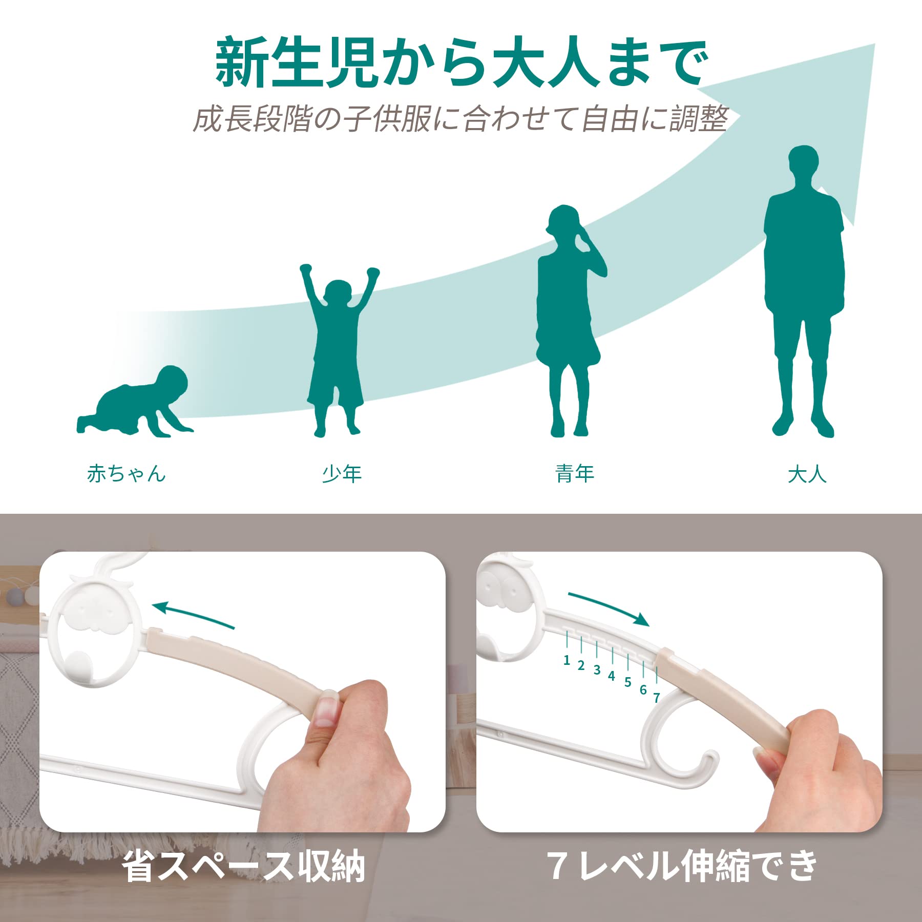 50本セット ハンガー すべらない 伸縮ハンガー 重ね掛け 5色 ベビー用 大人用 子供用スライドハンガー 型崩れ防止 物干し 省スペース 7段階調節可能 洗濯ハンガー 伸縮衣類ハンガー 跡残さない 滑らない 新生児から大人まで おしゃれ 出産祝い 出産準備 |