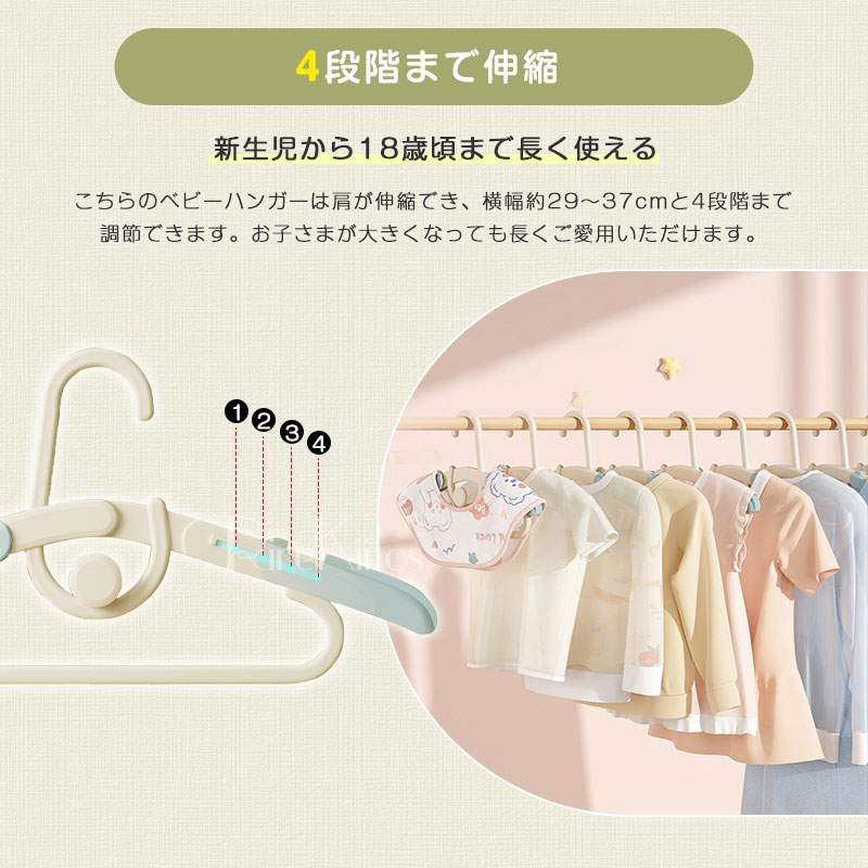 ベビーハンガー 20本セット 子供用ハンガー ハンガー ベビー用品 滑り止め 重ねるデザイン 洗濯ハンガー 衣類ハンガー幼稚園 保育園 スライド 乳児 幼児 保育園児 幼稚園児 可愛い おしゃれ 人気プレゼント サイズ調整 伸縮式27cm~37cm |