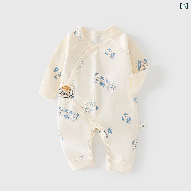 ベビーカバーオール 新生児 赤ちゃん ロンパース 秋冬 長袖 純綿100% コットン 縫い目なし 無縫製 肌に優しい 和装風 前開き 合わせタイプ マジックテープ留め |