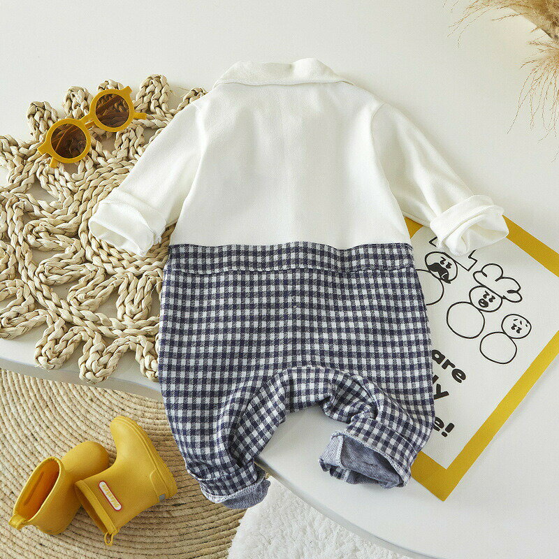 【数量限定!30%OFFクーポン】ベビー服 ロンパース フォーマル 重ね着風 蝶ネクタイ チェック 長袖 男児 ベビー 普段着 洋服 タキシード風 紳士風 赤ちゃん 新生児 新年会 お宮参り 出産祝い 百日祝い 結婚式 お食い初め 誕生日 記念写真 男の子 ベビーカバーオール |