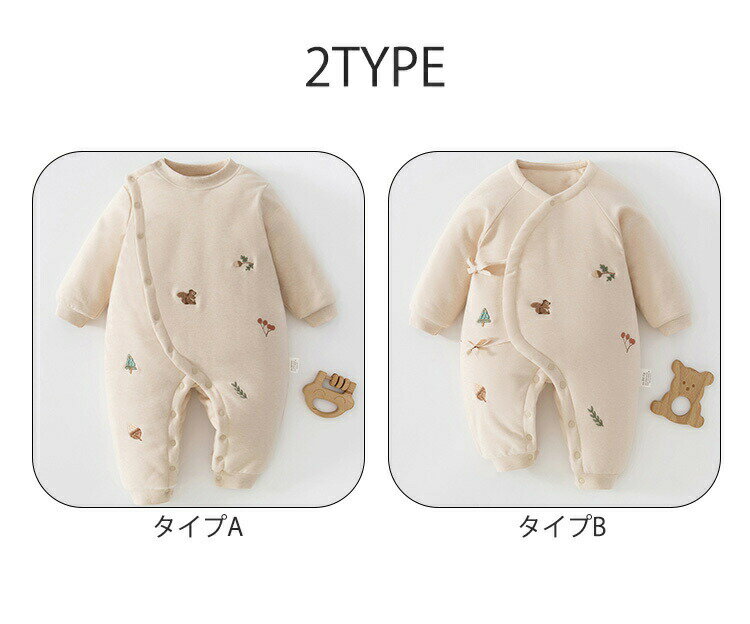 ベビーカバーオール冬用中綿入り長袖ロンパース新生児秋冬防寒ふんわりA級コットン前開きかわいいナチュラル出産祝い男の子女の子着脱簡単保温素材525966738090cm |