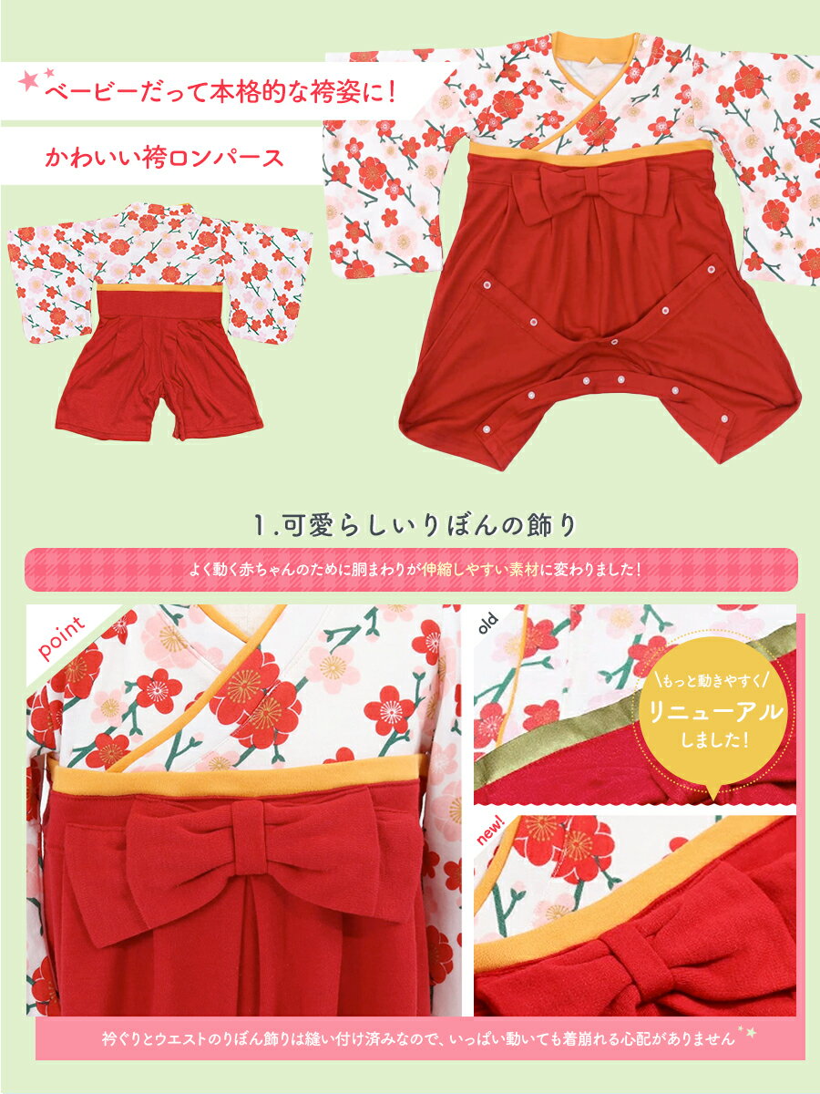 ベビー袴 ( 袴ロンパース ) メール便{P50} 袴 ロンパース 女の子 男の子 10colors お正月 初詣 お食い初め ベビー服 ベビー カバーオール 新生児 70/80/90 |