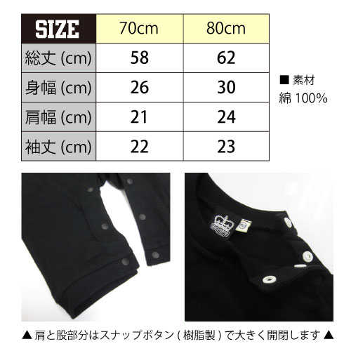 【無地】長袖ロンパース[70cm 80cm] 無地 ロンパース 長袖 赤ちゃん ベビー カバーオール 半袖 ブラック 黒 男の子 女の子 ベビー服 |