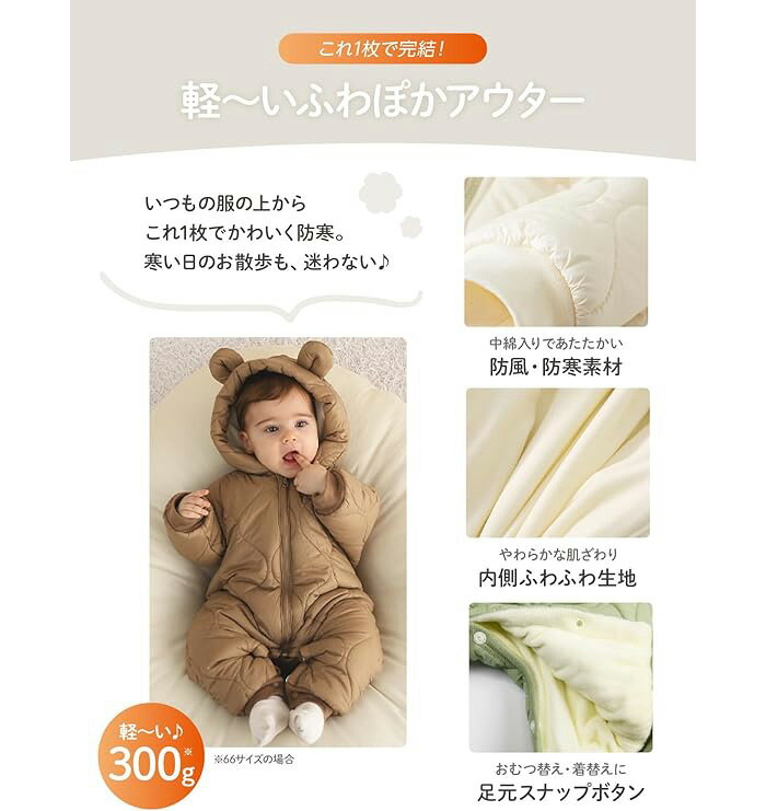 ベビー服 ジャンプスーツ ベビー カバーオール 耳付き くま耳 くま 防寒着 中綿 裏ボア フード付き アウター ふわもこ 軽量 赤ちゃん ベビー 男の子 女の子 カバーオール あかちゃん 長袖 雪遊び 撥水 防水 中綿ロンパース ロンパース 出産祝い プレゼント ギフト 白 緑 |