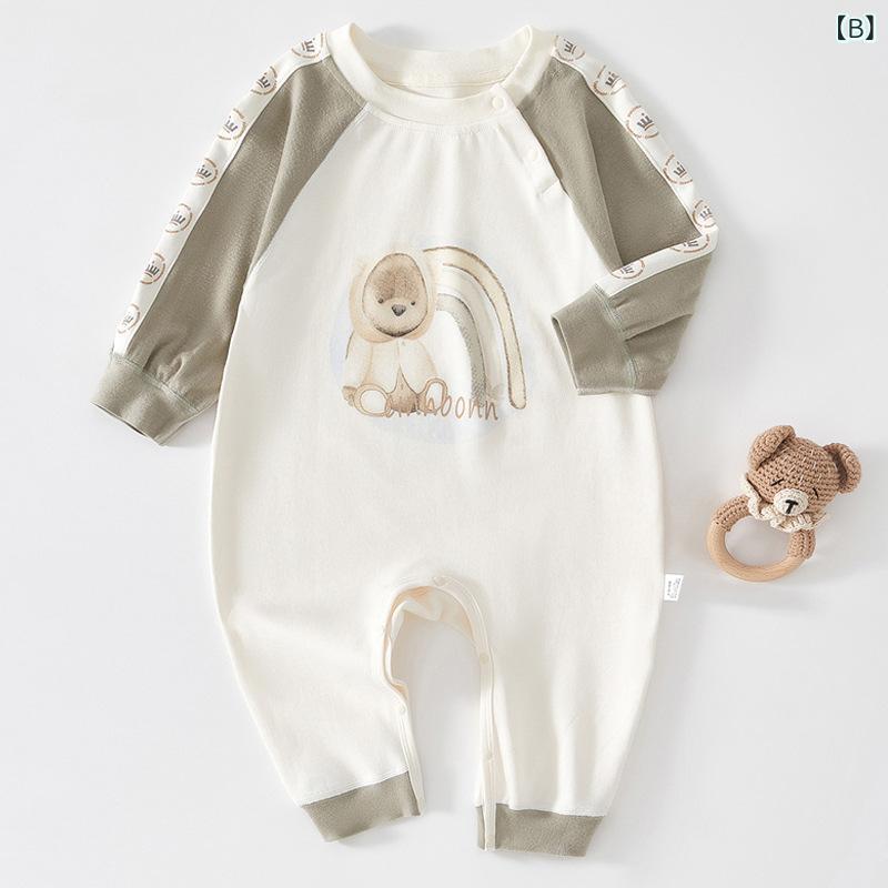 ロンパース 新生児 男の子 ベビー カバーオール つなぎ 綿100% 無縫製 長袖 お出かけ着 外出服 抱っこ服 普段使い |