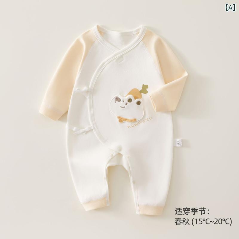 ロンパース 新生児 ベビー カバーオール A類 無縫製 綿100% 長袖 紐タイプ 前開き 斜め合わせ 男女兼用 やわらか 肌着 普段着 寝間着 パジャマ 子供用品 カジュアル |