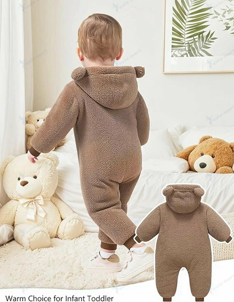 [TUPOLILI] ジャンプスーツ ベビー カバーオール 耳付き くま耳 くま フード付き 中綿 裏ボア アウター ロンパース ベビー服 子供服 ふわふわ キッズ 赤ちゃん 長袖 雪遊び 防寒 秋冬ダウンロン |