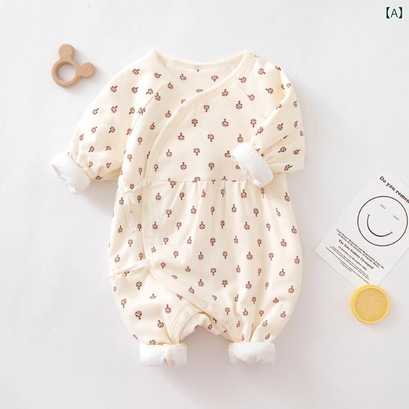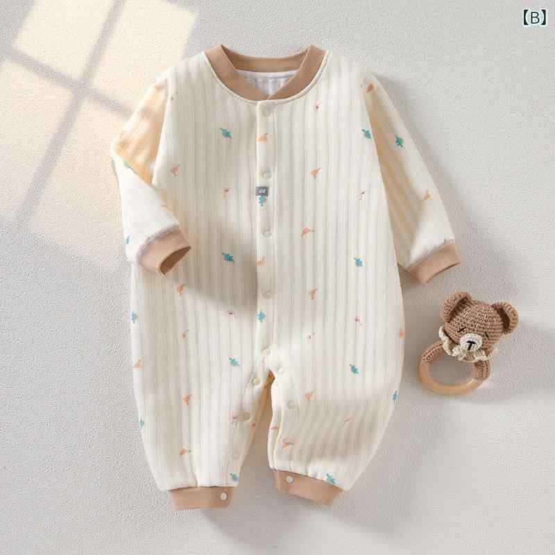 ロンパース ベビー カバーオール 長袖 綿 コットン 三層保温 無縫製 秋冬 ルームウェア パジャマ 乳幼児 男女兼用 赤ちゃん服 |