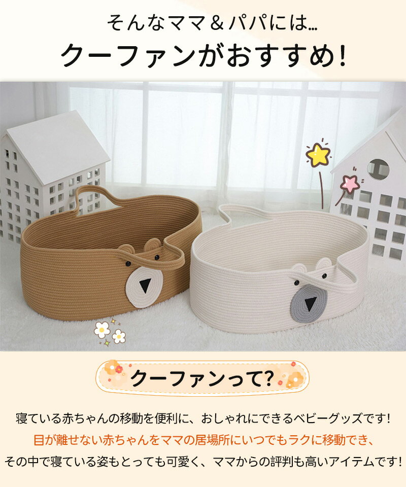 ベビー クーファン 添い寝 ベビーバスケット ベビーベッド かご 籠 クーハン バスケット ロープ編み 寝返り防止 お昼寝 ベビーキャリー ベビー バスケット 赤ちゃん 持ち運び ランドリーバスケット おもちゃ入れ シンプル 室内室外 |