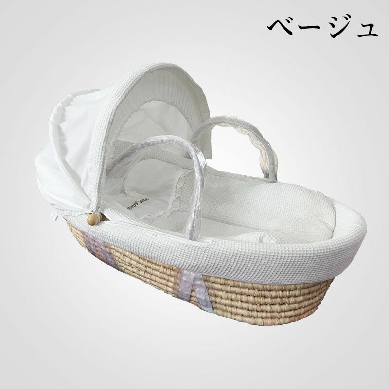 草編み 敷きマット付き クーハン ベビーキャリー かご ベビーベッド バスケット 赤ちゃん 新生児 退院 シンプル |