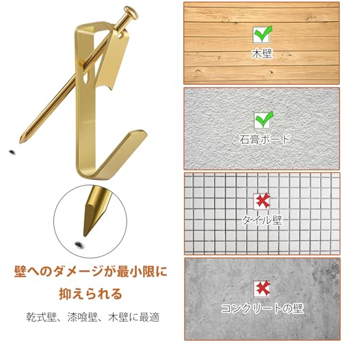 【送料無料】5WYOUKE【30個入】 画鋲 フック おしゃれ ピンフック 耐荷重約4.5kg 石膏ボード・ベニヤ・木用フック 目立たない 跡が残らない 釘フック 壁 傷つけない ゴールド 金属 錆びない 額縁/時計/絵画/クリスマス 飾り用/カレンダー/鍵/写真/自宅/オフィス/キッチン |