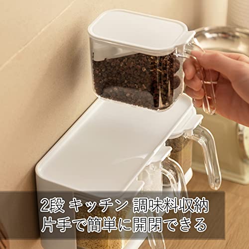【送料無料】Toski 調味料入れ マグネット スタンド 2層 キッチン用 スパイス収納ラック 壁掛け 3個組 ストッカー ケース 砂糖 塩 コショウ入れ ポット 省スペース お手入れ簡単 防水防湿 スプーン付き 片手で簡単 組み立て不要 ホワイト |
